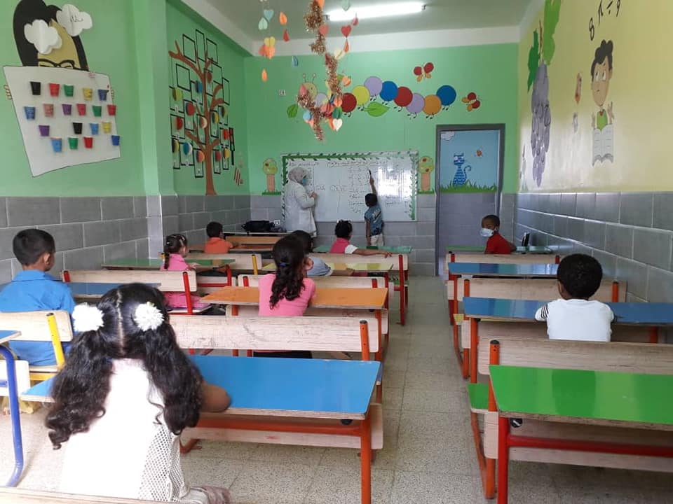 أقسام ما قبل التمدرس مهيئة لاستقبال الأطفال مرفقة بمساحة لعب و مطعم.
